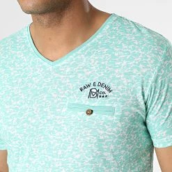 Meilleur prix 🛒 T-shirt Col V A Poche Poitrine Miramar Turquoise Blanc Floral de La Maison Blaggio ✨