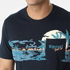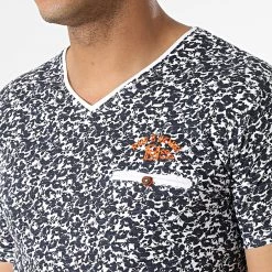 Tout neuf 🔥 T-shirt Col V A Poche Poitrine Miramar Bleu Marine Blanc Floral de La Maison Blaggio 🎉