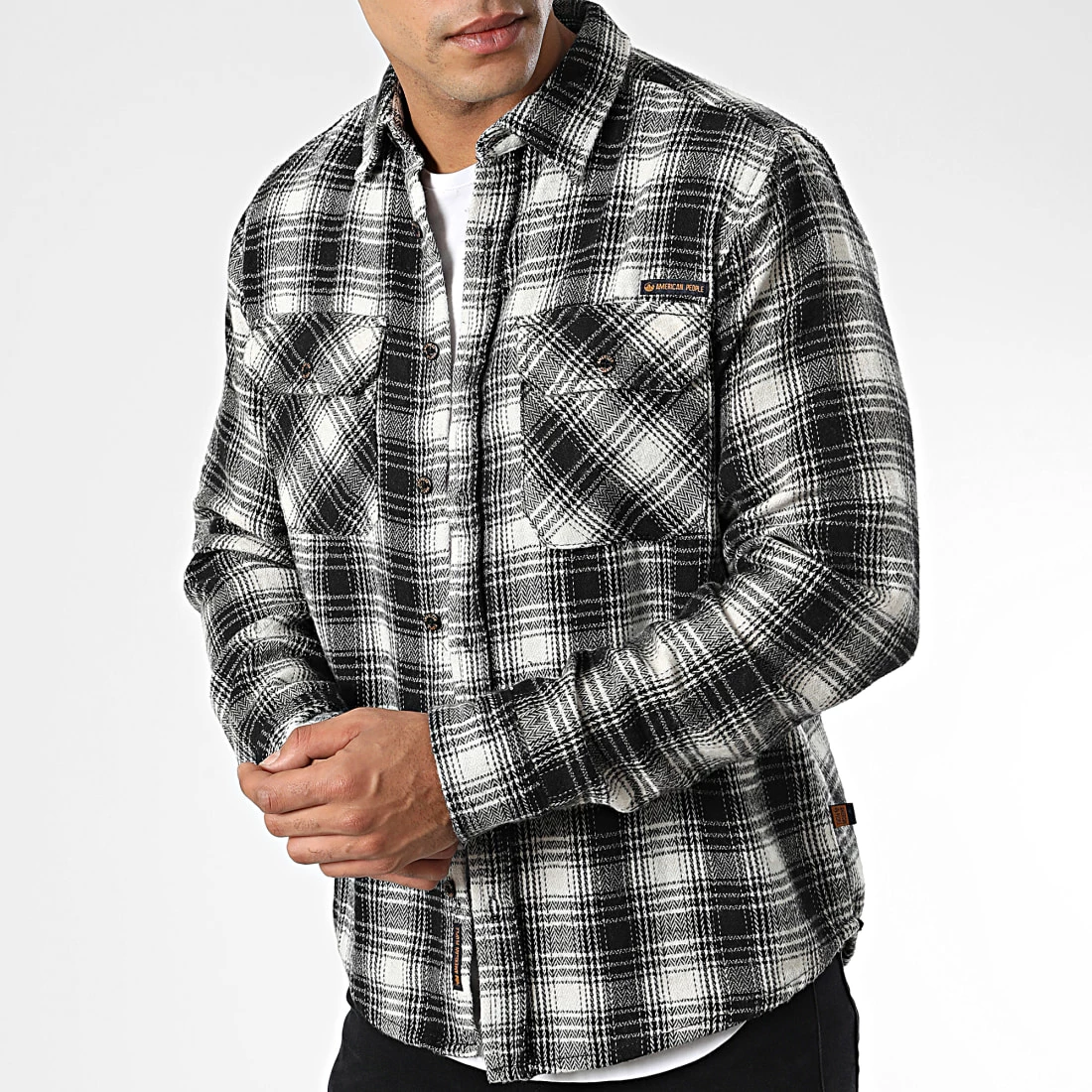 • Chemise à manches longues tendance avec motif à carreaux brodé