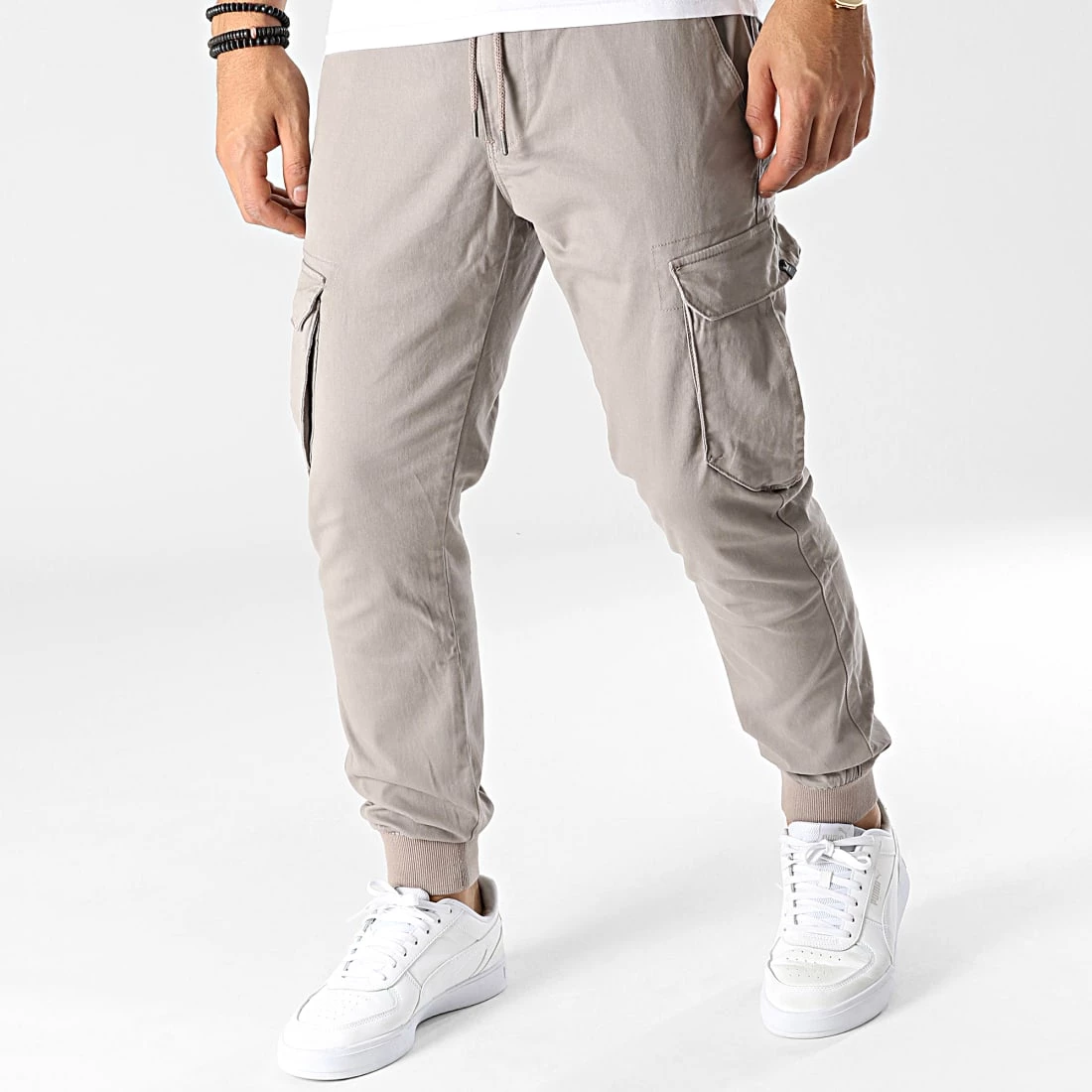 • Pantalon cargo tendance en coton uni style jogger pant