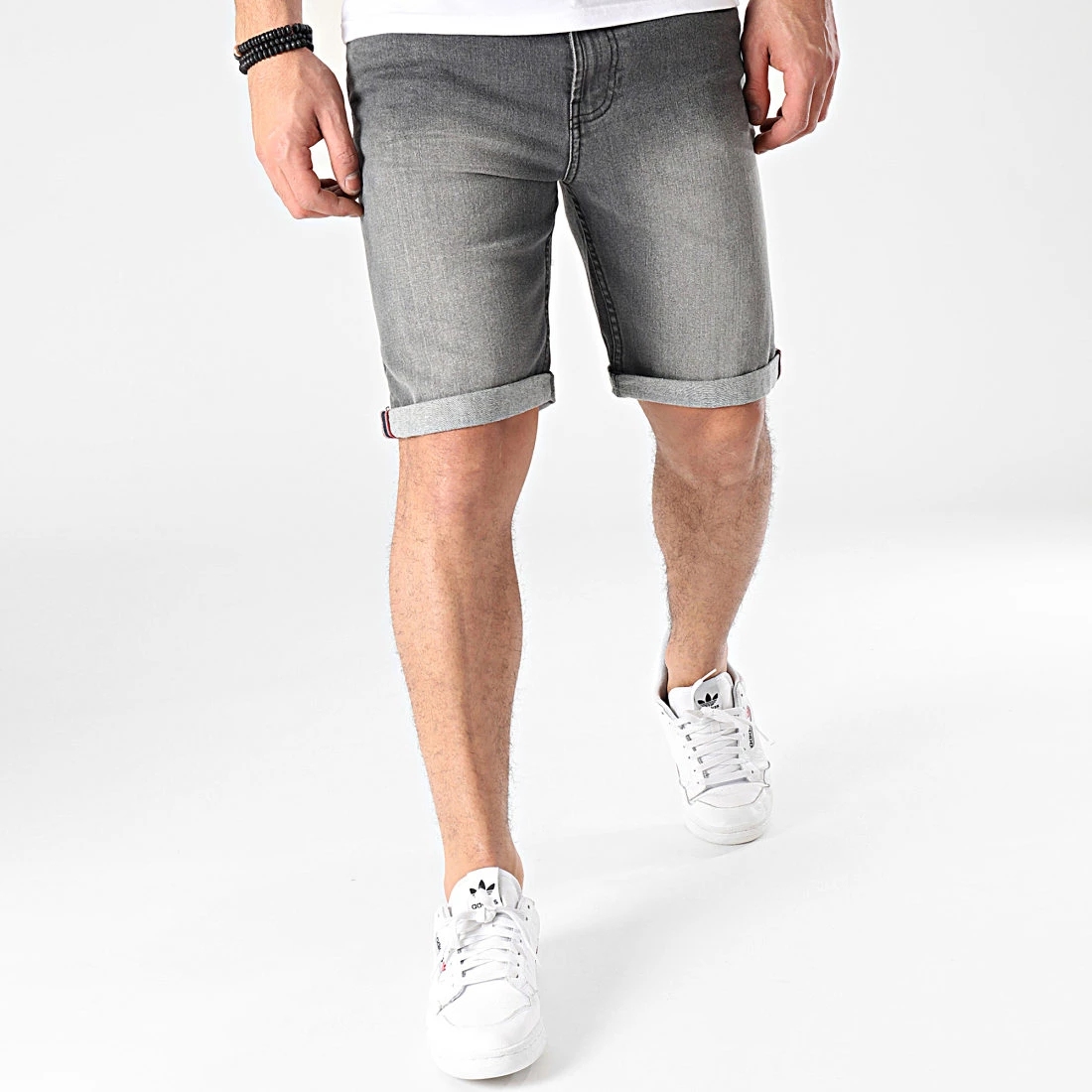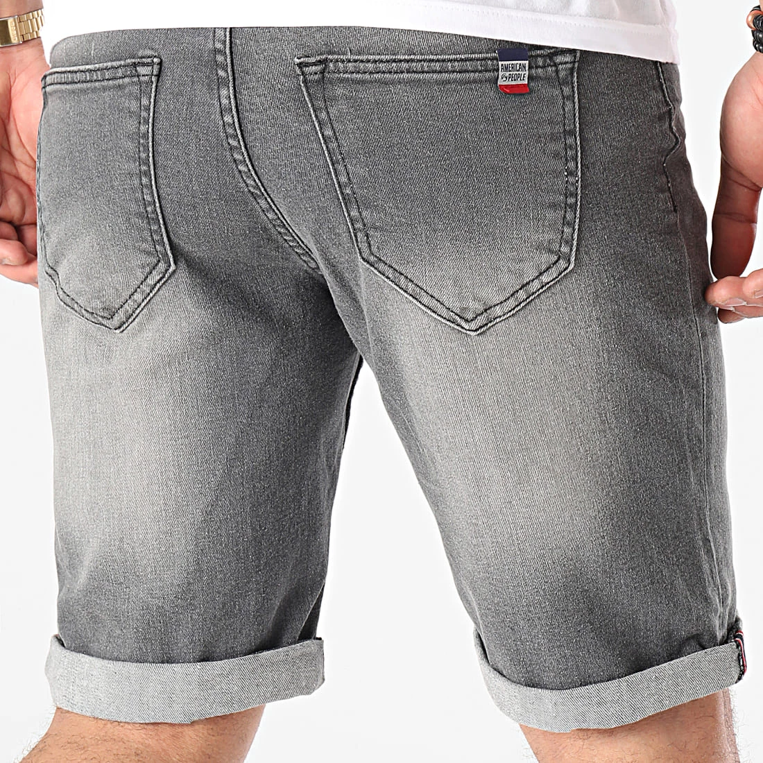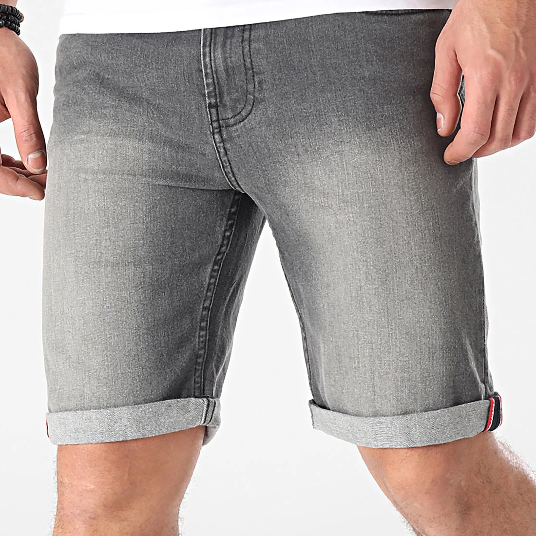 • Short jean à finition légèrement délavée