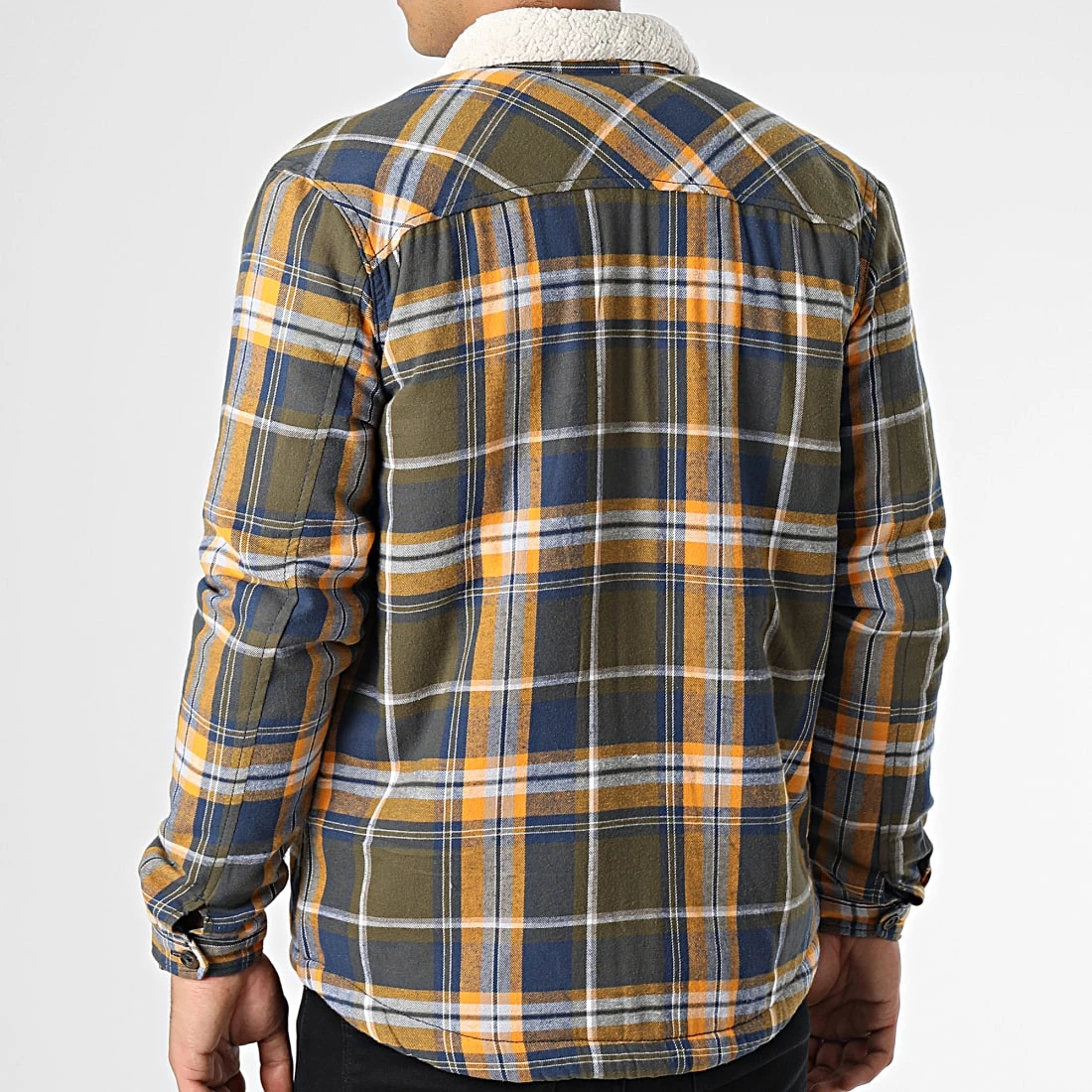 • Veste col mouton tendance avec motif à carreaux brodé