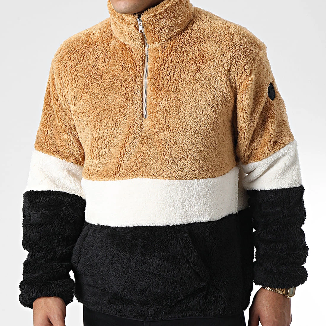 • Veste polaire tricolore tendance avec patch American People brodé