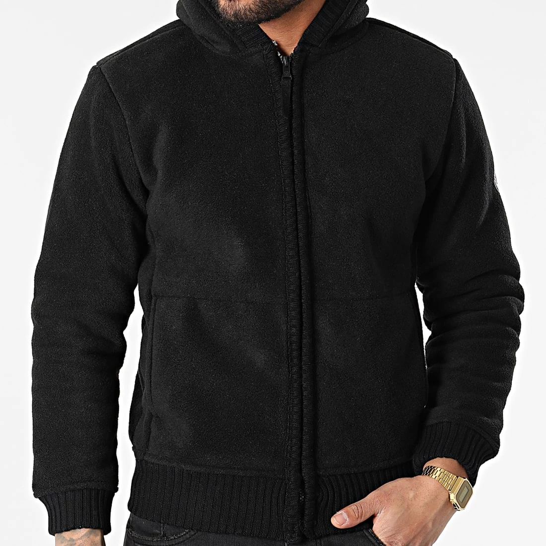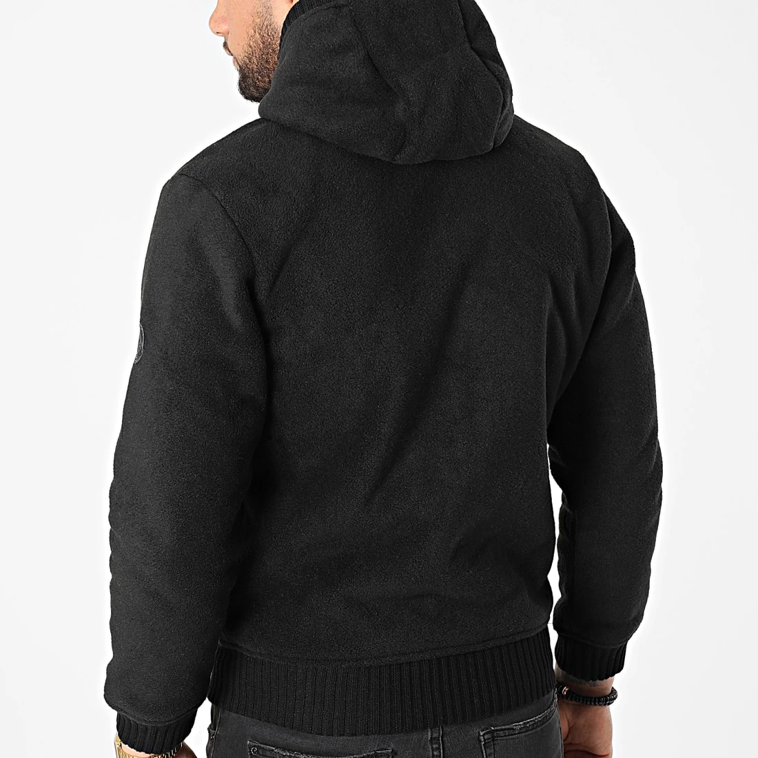 • Veste zippée capuche en tissu doux avec patch sur la manche